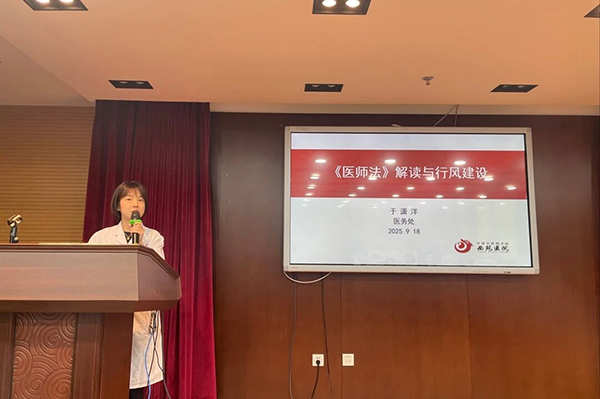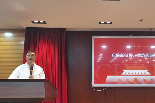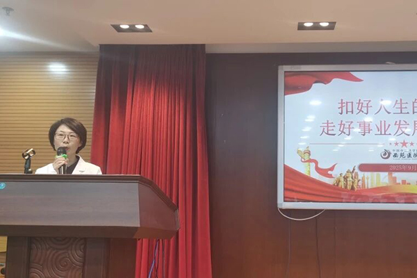 党委书记李秋艳代表医院对各位新职工表示热烈欢迎,激励新职工“牢记传承创新使命,做中医药发展的接力者”“坚守医者仁心本色,做人民健康的守护者”“砥砺前行不负韶华,做永久奋斗的践行者”。李秋艳以“扬帆破浪正当时,西苑同心向未来”为题,为新职工讲授“职业生涯第一课”。围绕西苑医院七十年的光辉历程,通过系统介绍医院的历史沿革、发展现状与未来规划,引领新职工深入理解医院文化,快速融入集体,同时激励新职工在新时代中医药振兴发展的征程中贡献智慧与力量。勉励新职工坚定理想信念,永葆对中医药事业的热忱与敬畏,在临床、科研、管理等岗位上精益求精、守正创新;注重医德修养,践行“大医精诚”精神,以患者为中心,提供优质高效的医疗服务;把个人的小我融入国家的大我、人民的大我之中,早日成为西苑医院发展道路上的中流砥柱与光辉力量。