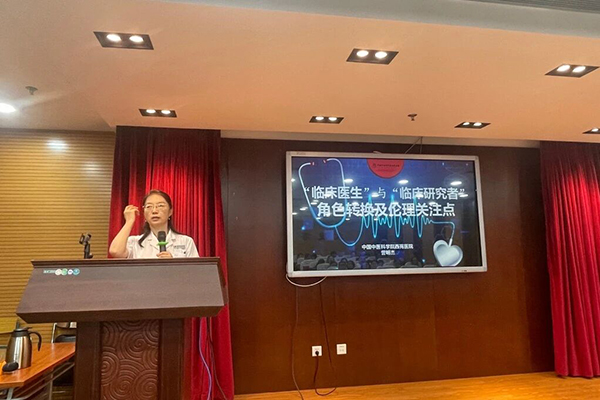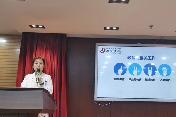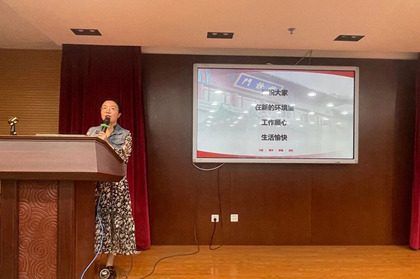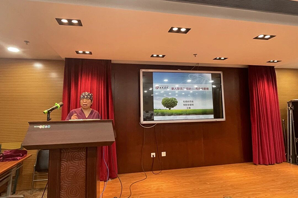 肿瘤科主任许云作为老职工代表分享了入职后的工作体会。她指出,一颗优秀的种子只有扎根于沃土才能成为参天大树。希望新职工能深刻理解“个人与集体”的关系,快速融入科室和医院的集体,把个体成长融入集体发展,乐于奉献、勇于担当,在西苑医院广阔舞台绽放光彩。