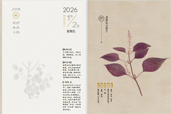 全书严循《本草纲目》(校点本第二版)与《中国药典》,精选365味经典本草,依四时次序系统编排。从岁首启运的“桂”到年终封藏的“锁阳”,每日一味,循序渐进。每一页不仅详述药材的源流、性味与功效,更辅以本草趣谈“岁时记”,让千年药香浸润当下日常。