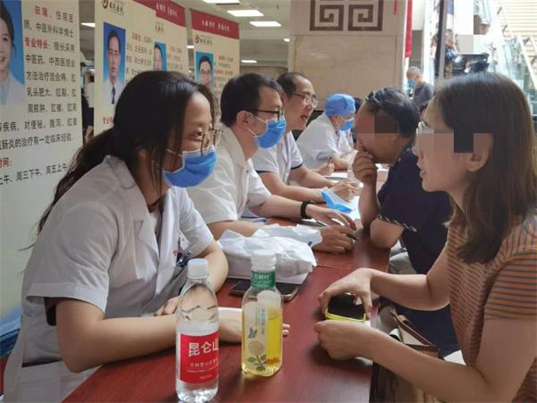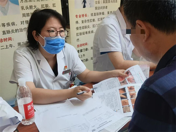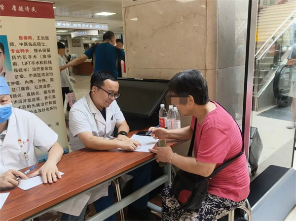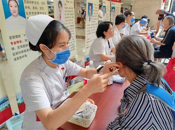 义诊环节,由贝绍生主任、赵卫兵副主任领衔,曹威巍、崔春辉、田瑞医师,以及王艳、娄肖茹护理专家组成的团队,为近百名市民提供免费咨询、初步筛查与康复指导。面对市民提出的便血、便秘、结直肠癌术后康复等问题,专家们细致分析病史,制定个性化中西医结合防治方案;护理团队开展穴位贴敷、耳穴压豆等中医特色技术,让市民亲身感受中医药在肠道调理、肛周及肠道症状缓解中的独特效果。