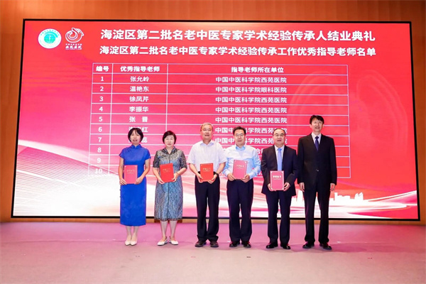 会议还举行了第二批名老中医学术经验继承人结业典礼暨第三批拜师仪式。西苑医院张允岭教授、徐凤芹教授、谢京红教授等被评为第二批优秀传承人与指导老师。新一批传承人向导师敬献鲜花、行拜师礼,导师回赠中医典籍,庄严确立师徒关系,张允岭、李秋艳、苗青等十人被聘为第三批指导老师,部分老师出席拜师仪式。中医师承教育不仅弘扬尊师重道的优良传统,更强化了中医药学术与临床经验的薪火相传,以传统礼仪赓续中医血脉,为中医药事业持续培养高素质后备人才。